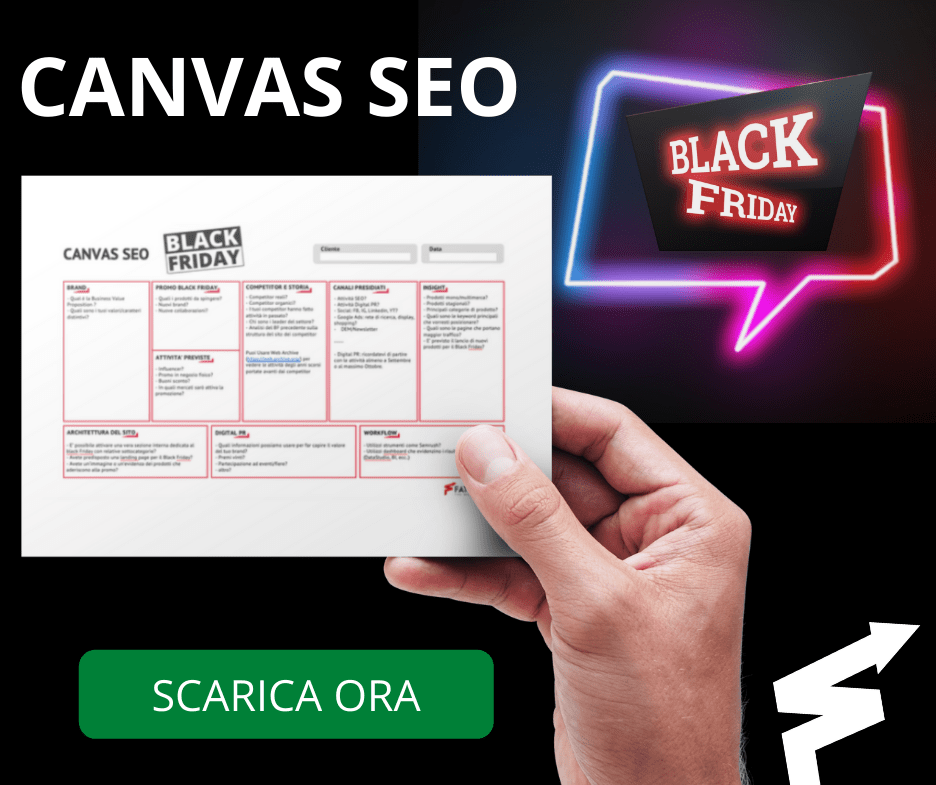 Fatti trovare pronto per il weekend più prezioso dell’anno per gli e-shop, conquista più visibilità in SERP con la Canvas SEO per Black Friday di Fattoretto Agency!
